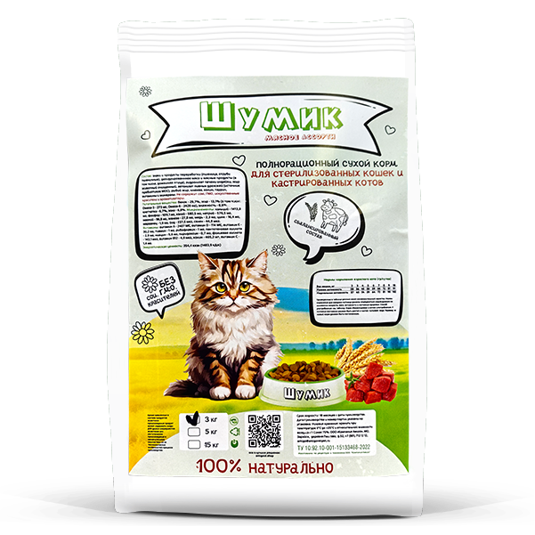 —Сухой полнорационный корм для стерилизованных кошек всех пород со вкусом мясного ассорти(Шумик)